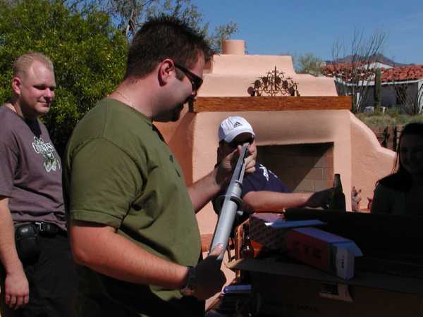 Brian "Struts" around with his birthday gifts.