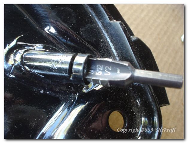 I used a step-reamer to very slightly open up the ID of the e-brake cable mount to 7/16".