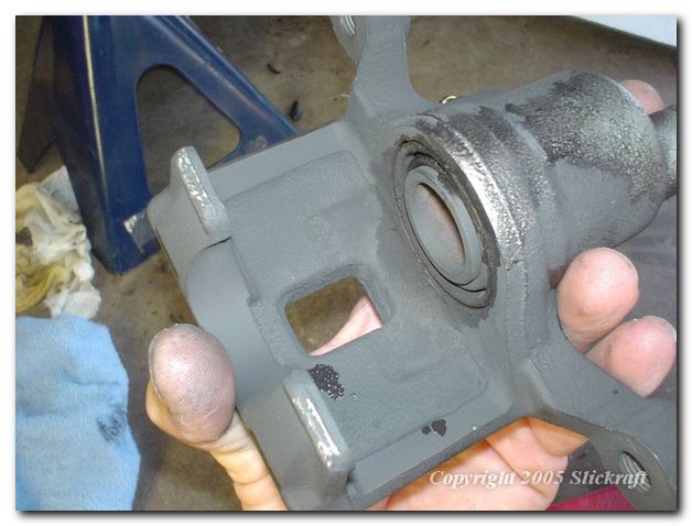 Use a C-clamp to gently push the piston flush with the caliper cyclinder.
