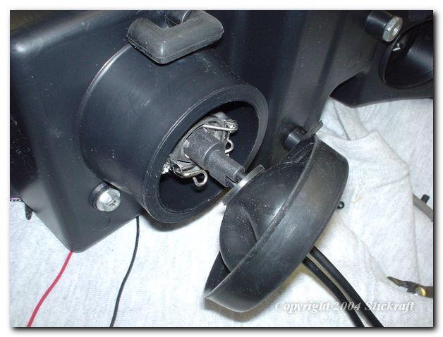 Rubber cup just before installing. HID bulbs in place. Not a bad fit but for "Off-road" use only per standard DOT regs.