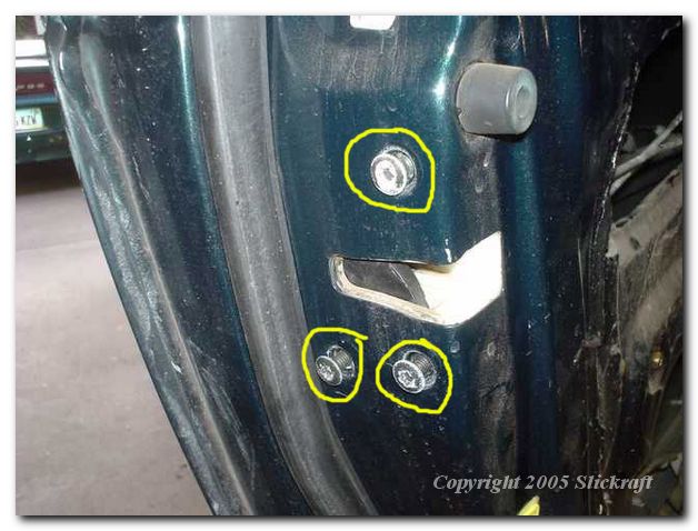 Remove the 3 Torx head screws retaining the door latch mechanism. This is the part that is critical to making the door handle removal and install easy.