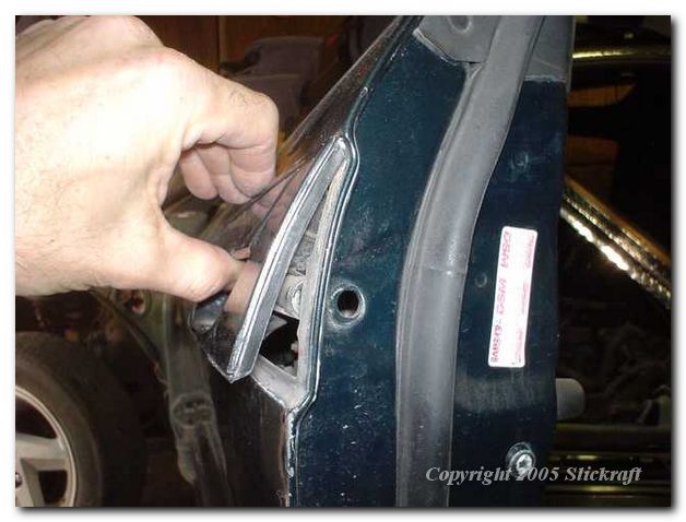 Now you can pull slightly out on the entire door handle so that you can now reach inside and have extra room to remove the lock cylinder from the handle.