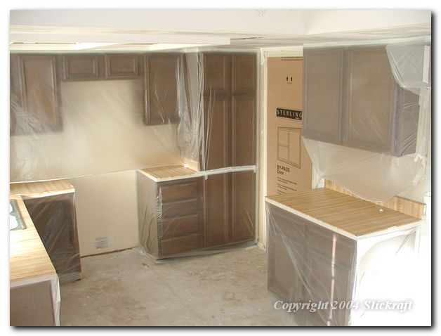 Prepping the kitchen for the spray texture on the walls and ceiling.