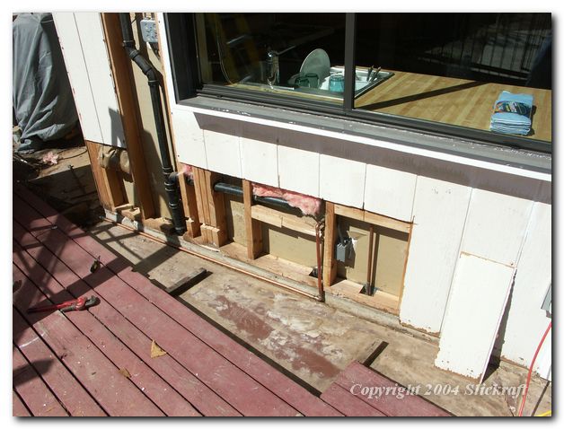 deck cut back from wall for access