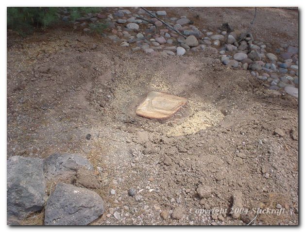 Stump cut below ground level to hide roots.