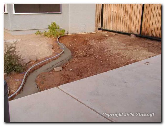 Laying out border with plastic pipe and pouring concrete and rebar for area where truck tires may tip the border bricks.