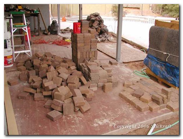 I had some pavers left over from the front and side yard projects so they were all blended together too. That big pile on the right under the black tar paper is the 4000 lbs of ceramic floor tile for inside the house. It's the third time I've moved it. Planning is everything right?