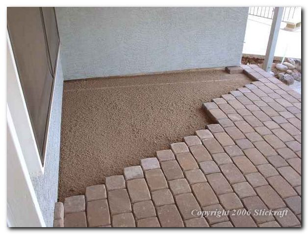 I work back and forth on a diagonal filling in the remaining pavers. As I get near the buried pipe I used to set the level, I pulled it up and filled and leveled that area by hand.
