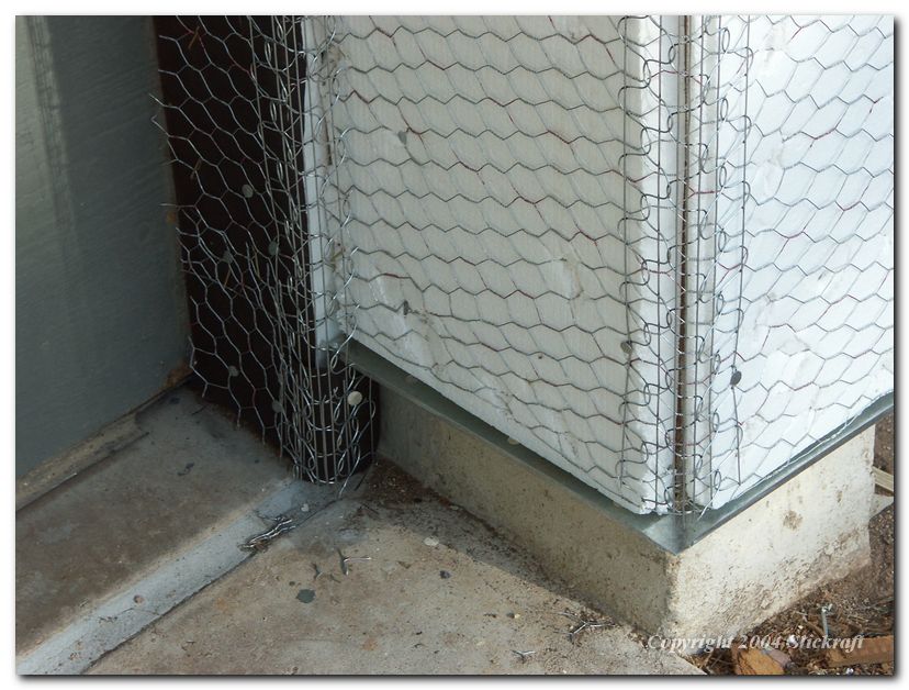 Bottom pillar next to garage door.