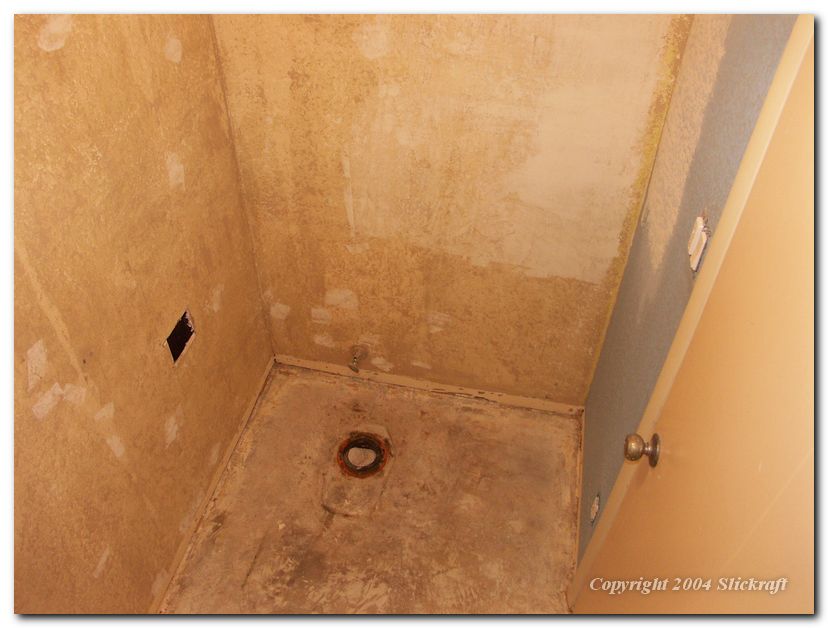 Master bathroom walls and floor stripped.
