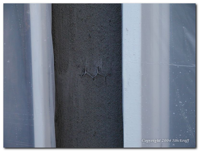 Some chicken wire still exposed. Next coat of stucco will hide it.