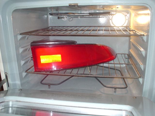 led_tail_gallery -- Baking the housing to remove the lens.