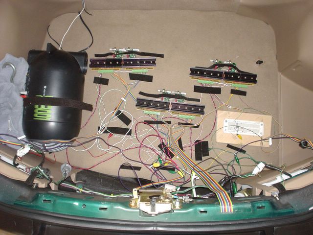 led_tail_gallery -- First road test of components. All parts Velcro'd to carpet for driving around town. Spare housing in back seat in case of meltdown. (not required)