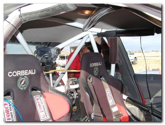 Nicole hiding behind the seat for the pic. She's refilling the drinking water packs.