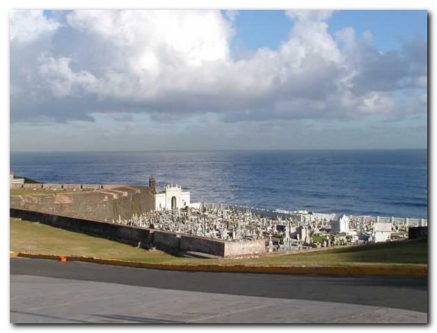 Looking towards the fort and an old cemetary.