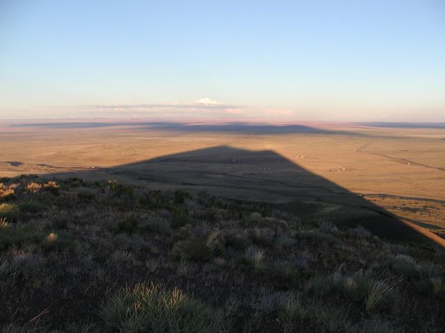 Sedona-Flagstaff-Aug-2005 -- The shadow of Merriam Crater races off across the desert towards the town of Leupp.